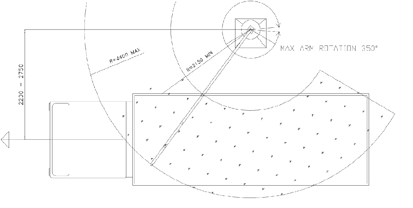 Робоча зона пробовідбірника “Лелека” оптимально адаптована для стандартних вантажівок без причепа. У випадку використання причепа вимагається додаткове переміщення вантажівки для відбору проби з причепа, але пристрій ідеально впорається із завданням, забезпечуючи надійний та точний процес відбору проб при роботі з цільовим матеріалом.